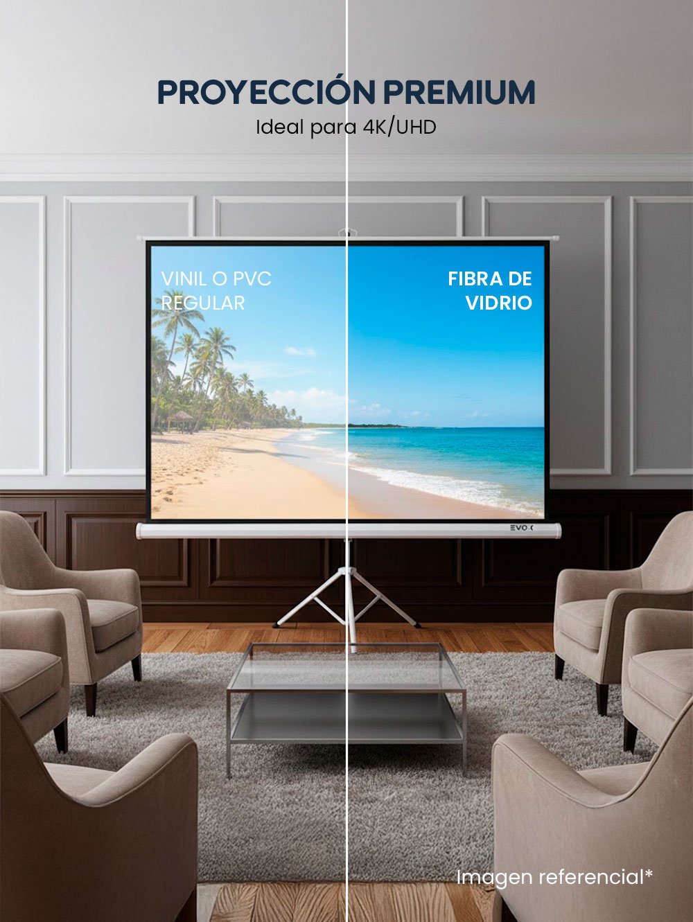 El Ecran Evox con Trípode Portátil de 120 pulgadas es la opción ideal para quienes necesitan movilidad, rapidez de instalación y excelente calidad de imagen en un solo producto. Perfecto para presentaciones corporativas, capacitaciones, aulas, eventos o uso doméstico, este ecran combina practicidad y desempeño visual profesional.