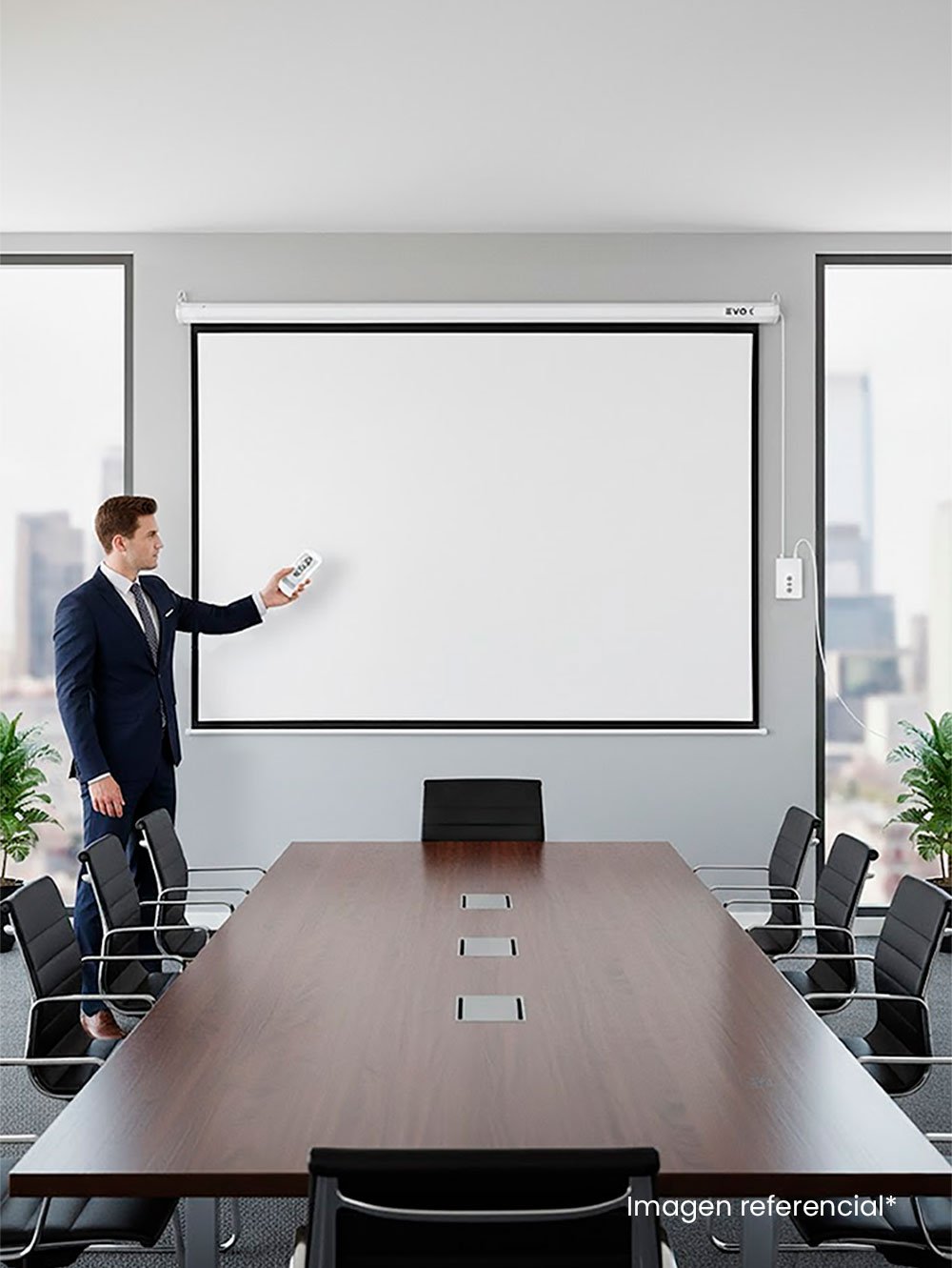 El Ecran Eléctrico Retráctil Evox de 120 pulgadas está diseñado para ofrecer una experiencia de proyección amplia, cómoda y de nivel profesional, ideal para salas de reuniones, aulas, auditorios y espacios de entretenimiento en casa. Su sistema motorizado brinda un manejo práctico y elegante, permitiendo desplegar y recoger la pantalla con total facilidad.
