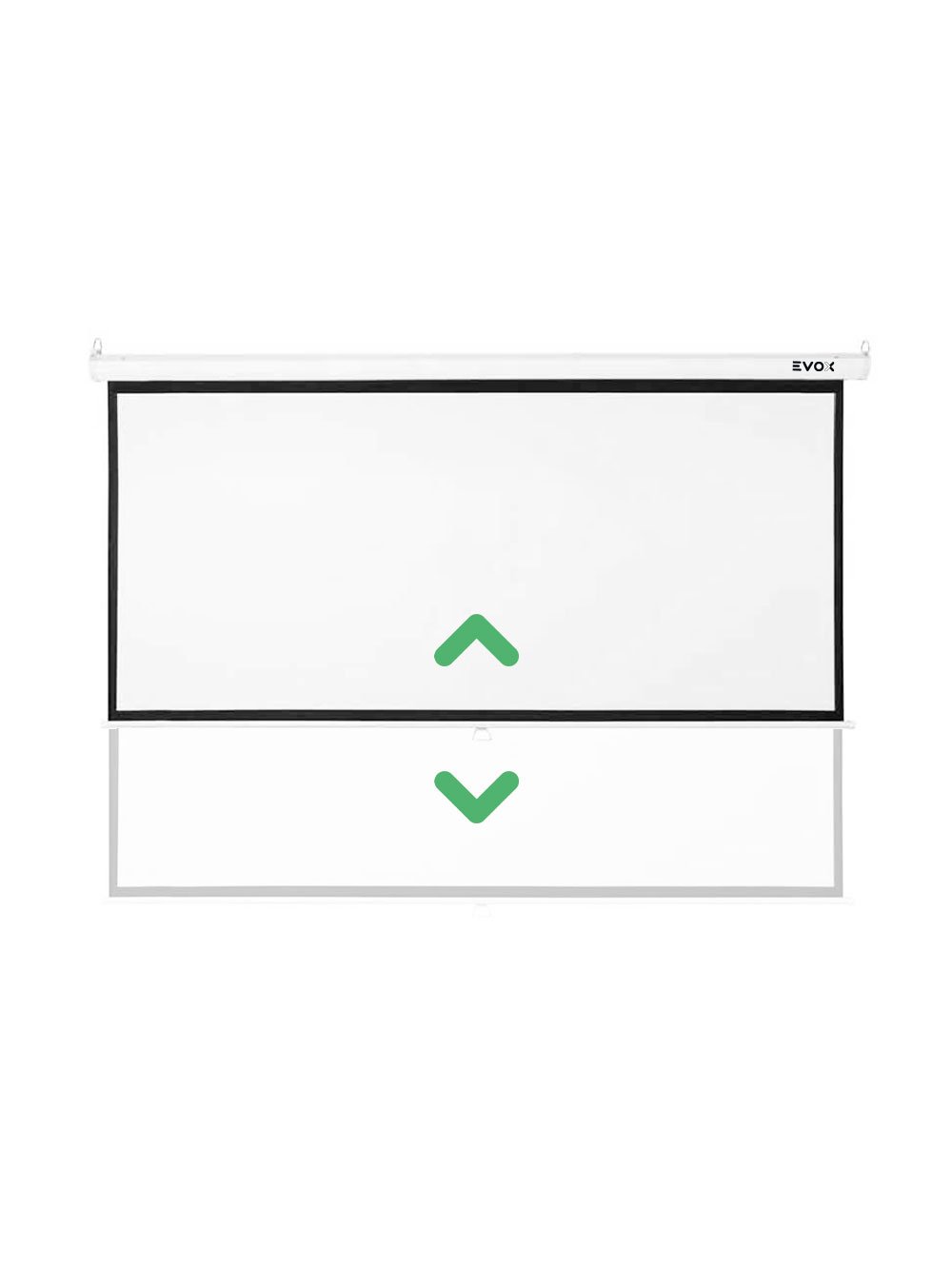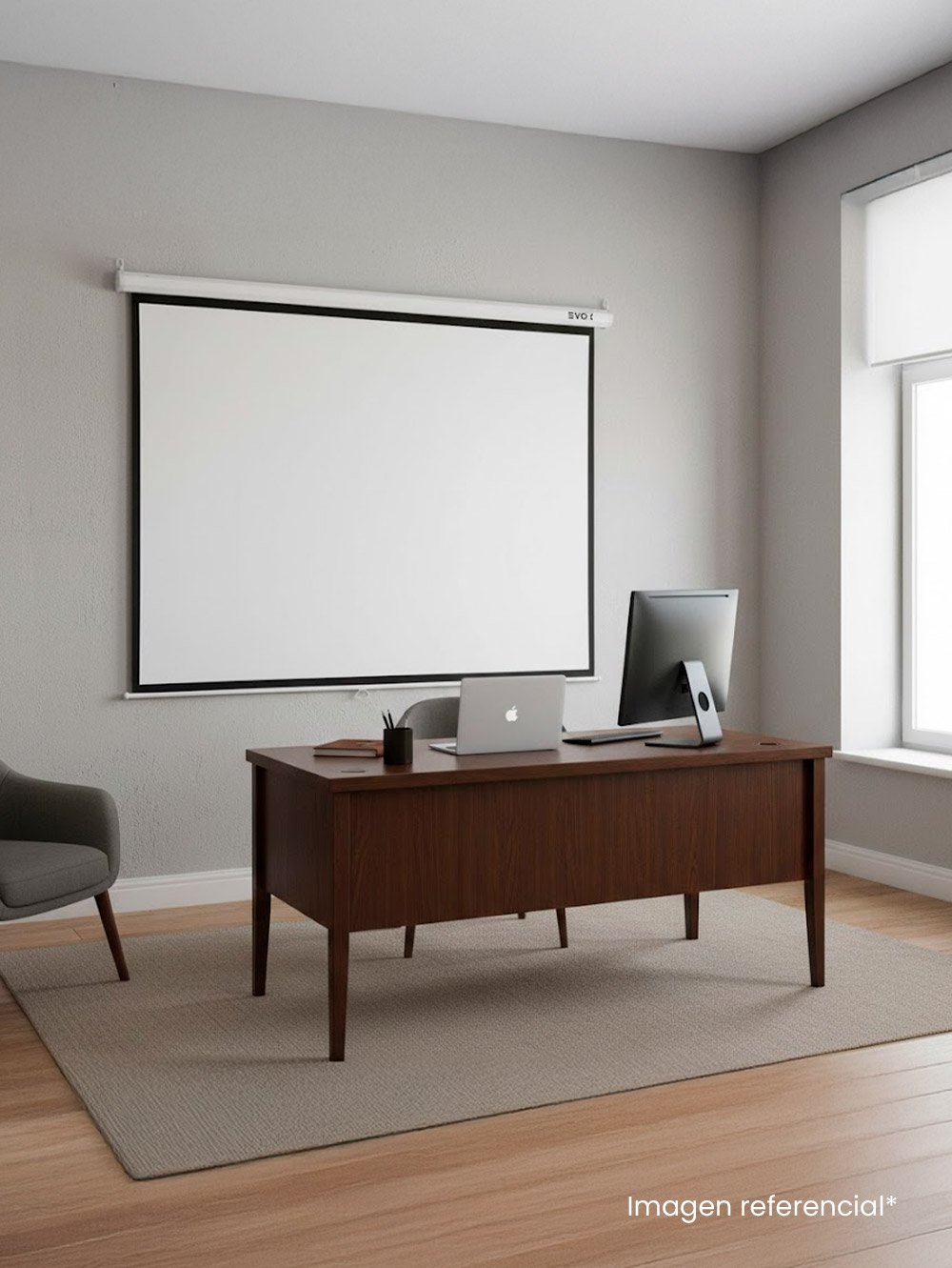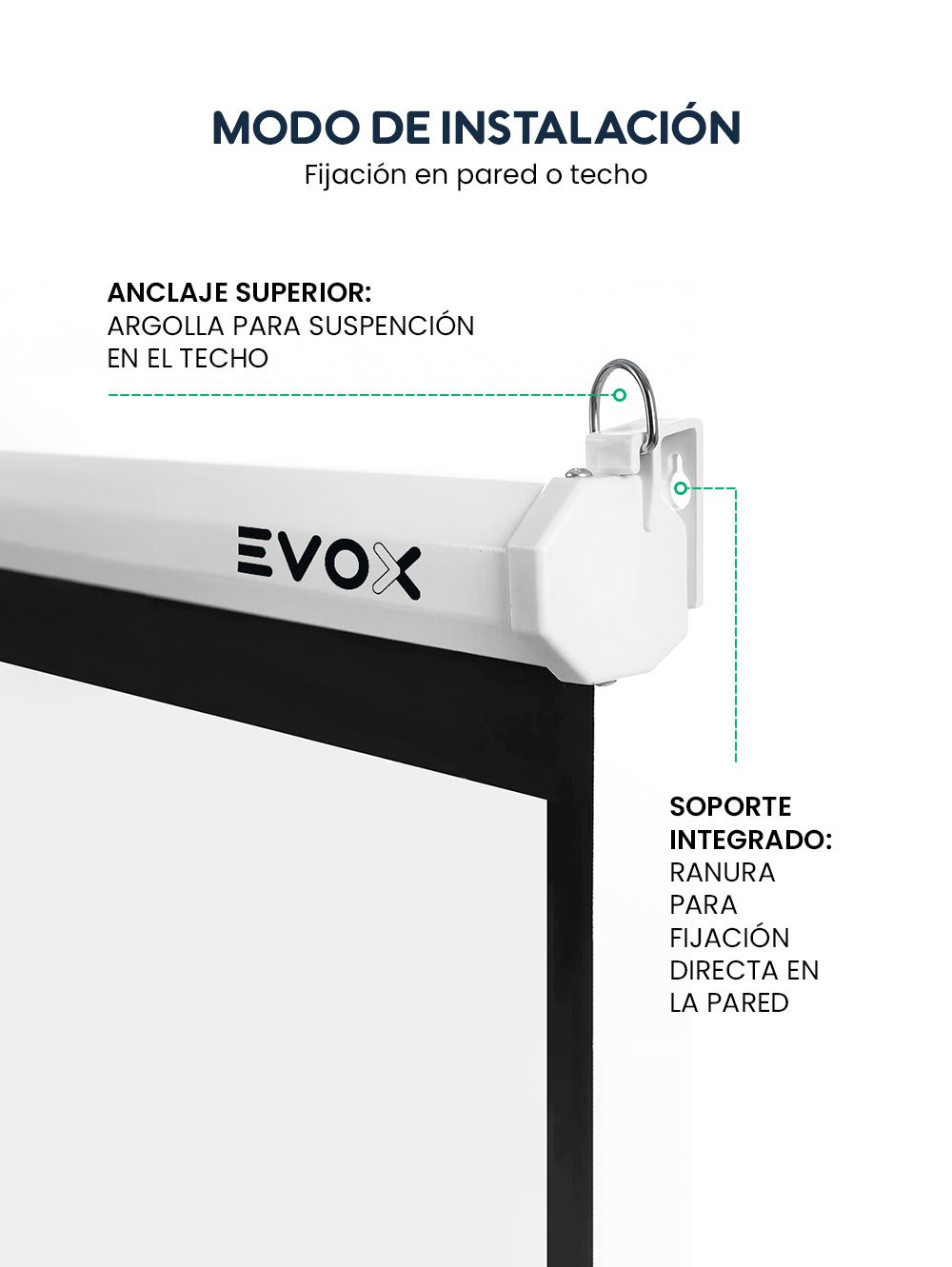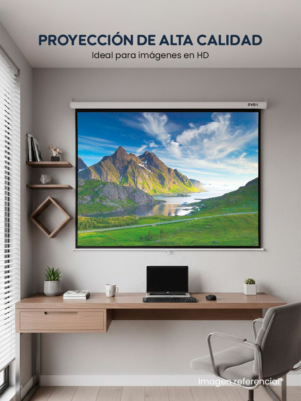 El Ecran Manual Retráctil Evox de 84” ofrece proyección clara y profesional con un diseño resistente y fácil de instalar, ideal para hogar, oficina o educación.