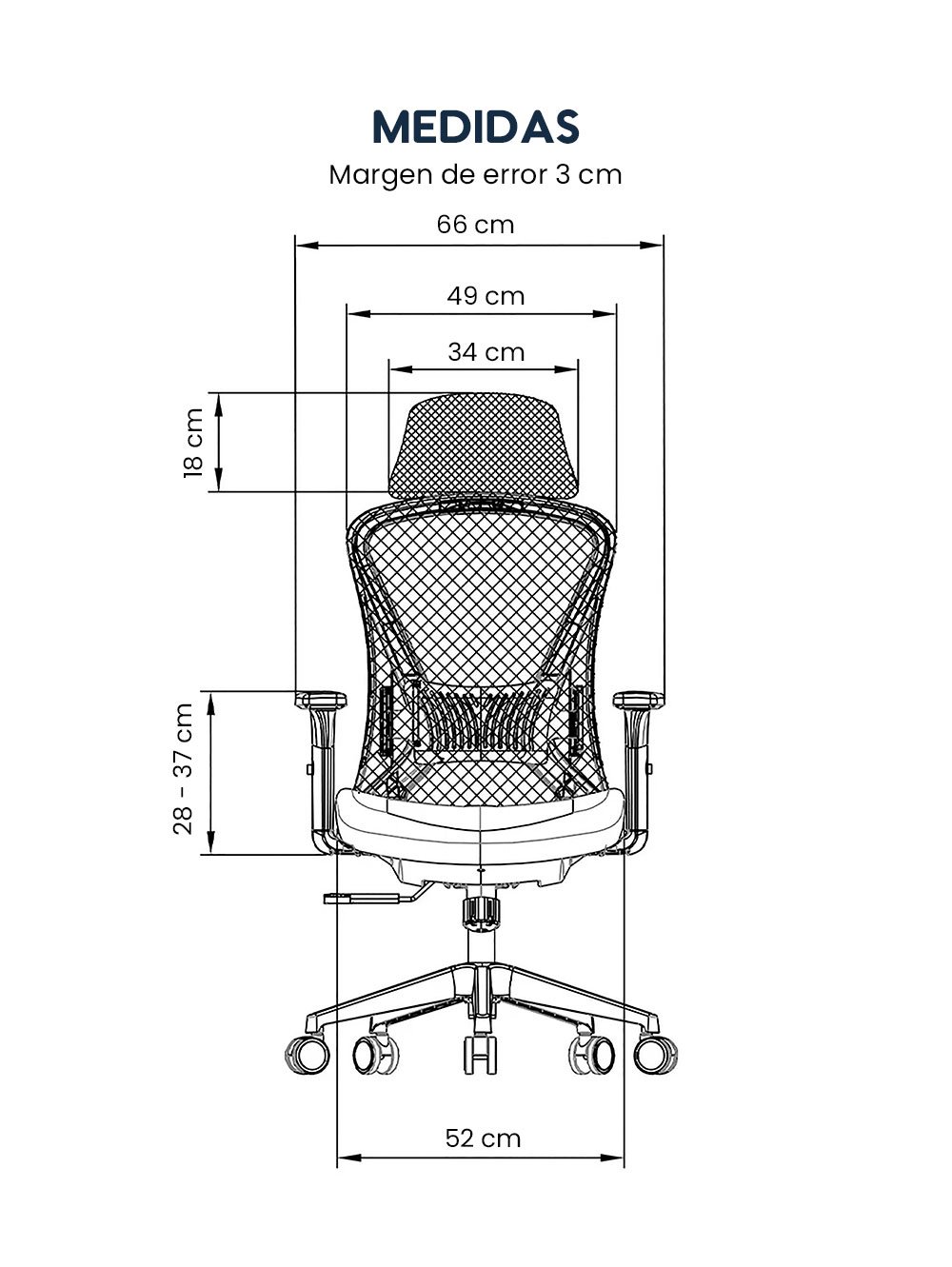 - Material: Malla de poliéster, asiento de espuma moldeable, estructura y base de nylon