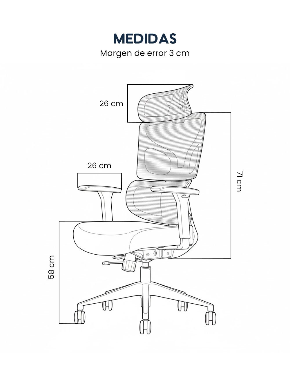 - Contenido empaque: Silla ergonómica (piezas), manual de usuario, tornillos y llave Allen